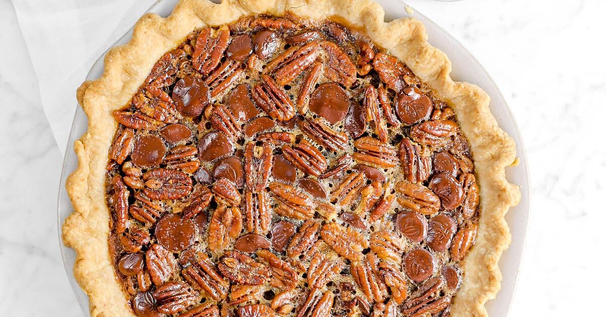 #PecanPieRecipe | Impress your thanksgiving dinner guests with this gooey delicious chocolate peach pie. Best thanksgiving dessert ever gets a secret twist to balance out the sugar. #foodtalkdaily #bestpecanpie #bestthanksgivingdessert